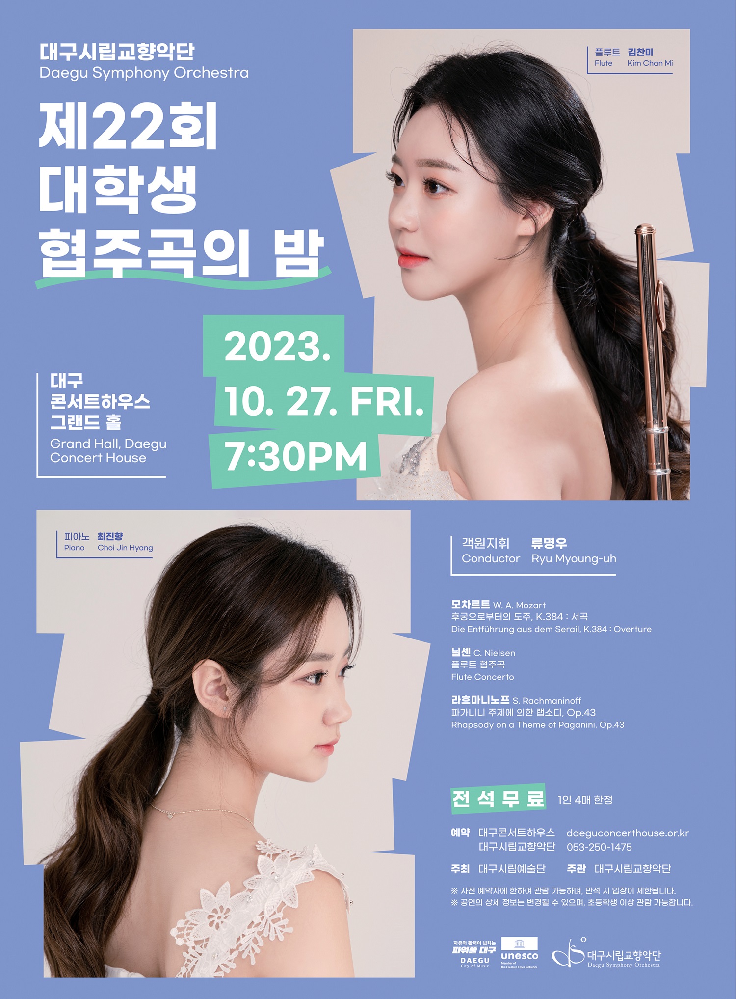 ● 예약 : 온라인 대구콘서트하우스 daeguconcerthouse.or.kr / 전화 대구시립교향악단 053-250-1475